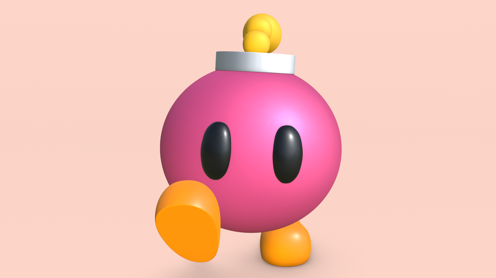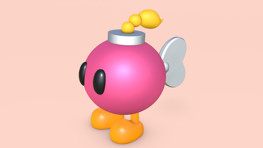 BOMBETTE. A 3d model of a rare character considering that she only appears in paper mario 64. This work is composed of 10 objects (including armature). The topology is low but if you wish you can increase it to your liking, depending on the use you give it. Files like OBJ are here for you if you want to print it in 3d.